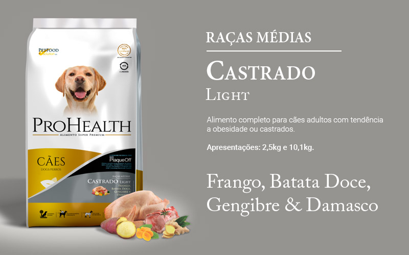 Farinha de vísceras de aves, quirera de arroz, farelo de trigo, farinha de torresmo, óleo de aves, hidrolisado de fígado de aves e suínos, farelo de glúten de milho – sem transgênico, plasma sanguíneo desidratado de suíno, farinha de batata doce (1%), óleo de salmão, farinha de alga parda (ascophylum nodosum - 0,4% - Plaque Off®), polpa de beterraba, cloreto de sódio (sal comum), cloreto de potássio, prebiótico (MOS – Mananoligossacarídeo), cloreto de colina, levedura inativada de cervejaria desidratada (Saccharomyces cerevisiae), semente de psylium, gengibre (0,075%), cúrcuma (0,075%), damasco (0,075%), DL-Metionina, zinco aminoácido quelato, extrato de Yucca, sulfato de glicosamina (0,03%), L-carnitina (0,025%) , selênio aminoácido quelato, sulfato de condroitina (0,01%), biotina, vitamina A, vitamina D3, vitamina E, vitamina C, vitamina K3, vitamina B1, vitamina B2, vitamina B6, vitamina B12, niacina, ácido pantotênico, colina, ácido fólico, sulfato de ferro, sulfato de cobre, monóxido de manganês, sulfato de zinco, iodato de cálcio, selenito de sódio, aditivo antioxidante (extrato de alecrim e tocoferol), aditivo adsorvente de micotoxinas (aluminossilicato de cálcio e sódio), aditivo conservante (ácido propiônico).