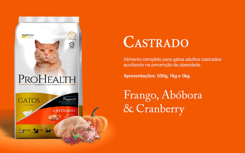 Referência: 01 copo de 250 ml = aproximadamente 100g de Pró-Health Cat Adulto Castrado.