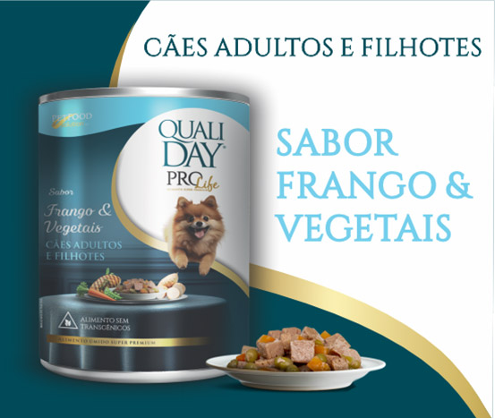 A linha QualiDay ProLife Alimentos Úmidos é indicada para cães e gatos de todas as idades, saudáveis, elaborado especialmente com ingredientes naturais, sem transgênicos, sem aromas e sem corantes artificiais.