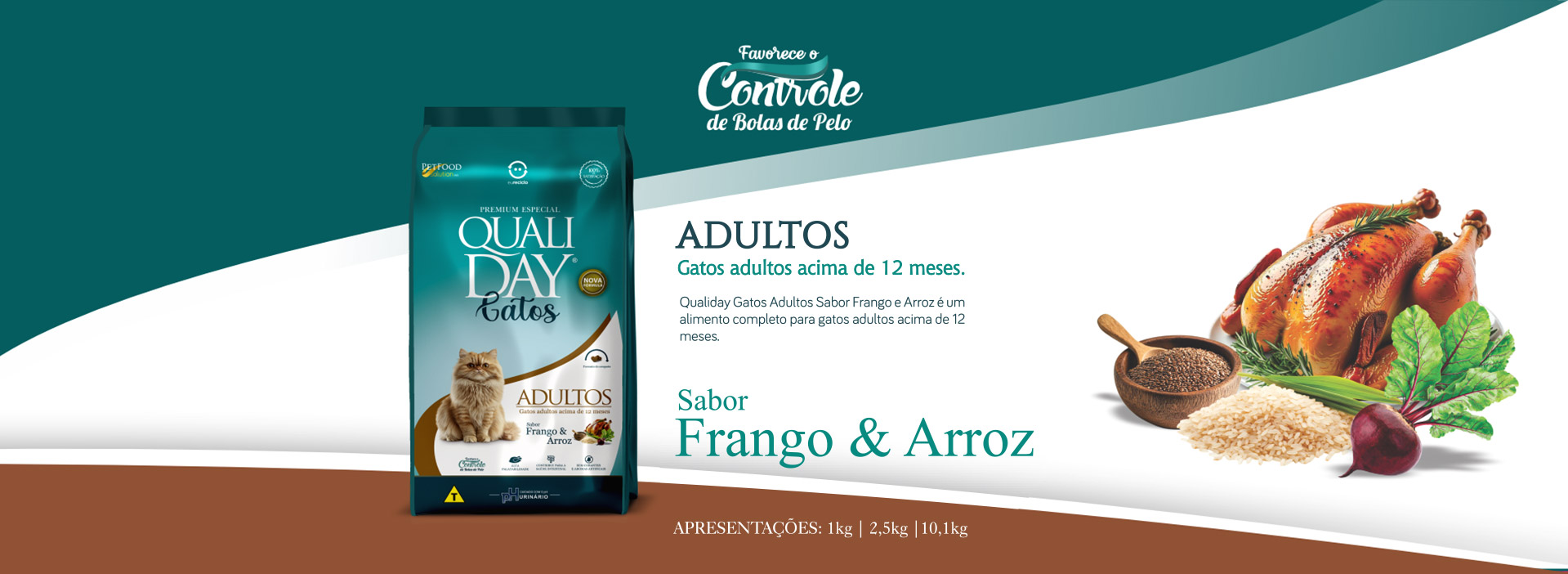 Servir Qualiday Gatos seguindo as quantidades diárias sugeridas na tabela abaixo. Recomenda-se dividir as quantidades diárias em porções, oferecidas ao longo do dia. As quantidades de alimento são orientativas, podem variar de forma individual, conforme porte, nível de atividade física e temperamento do gato.