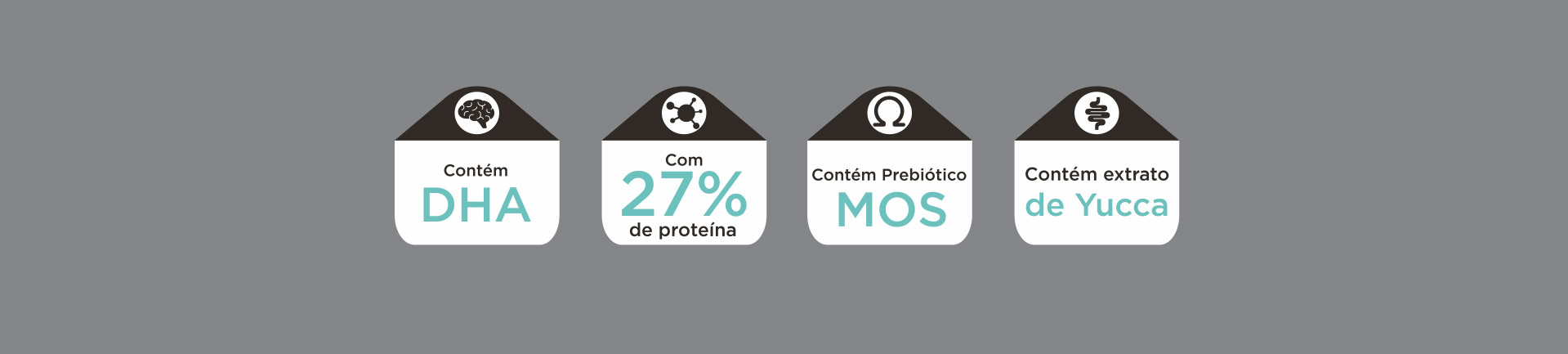 Farinha de vísceras de aves, quirera de arroz, farelo de glúten de milho 601, grão de milho1, farinha de carne e ossos de bovino, grão de sorgo, farelo de soja2, farelo de trigo3, levedura de cervejaria inativada desidratada, óleo de aves, biomassa de microalgas (Schizochytrium sp), grão de linhaça, polpa desidratada de beterraba, cloreto de sódio, cloreto de potássio, prebiótico (parede celular de levedura - mananoligossacarídeos – MOS – mín. 0,20%), extrato de yucca (mín. 0,01%), bentonita, parede celular de levedura, extrato de cardo-mariano, BHA, BHT, ácido cítrico, ácido propiônico, sorbato de potássio, hidrolisado de carne de aves e fígado de aves e suíno, cloreto de colina, biotina, vitamina A, vitamina D3, vitamina E, vitamina K3, vitamina B1, vitamina B2, vitamina B3, vitamina B5, vitamina B6, vitamina B9, vitamina B12, sulfato ferroso monohidratado, sulfato de cobre pentahidratado, sulfato de manganês monohidratado, sulfato de zinco monohidratado, iodato de cálcio, selenito de sódio.