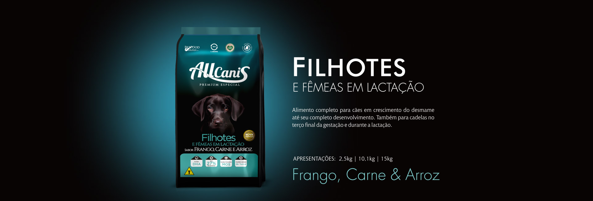 Referência: 01 copo de 250 ml = aproximadamente 100g de Allcanis Filhote