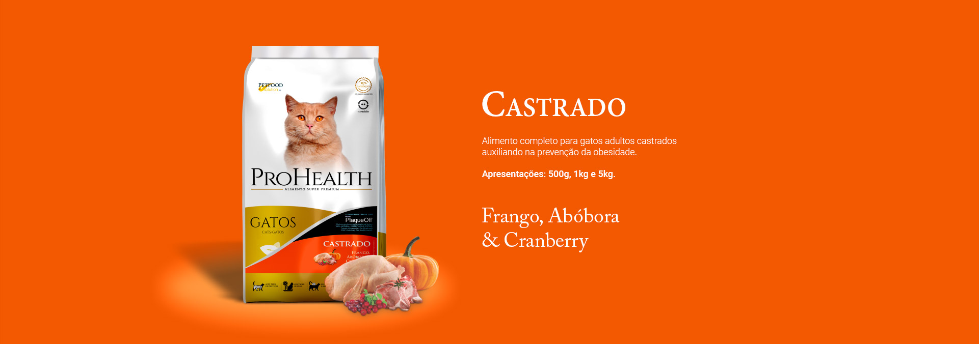Referência: 01 copo de 250 ml = aproximadamente 100g de Pró-Health Cat Adulto Castrado.