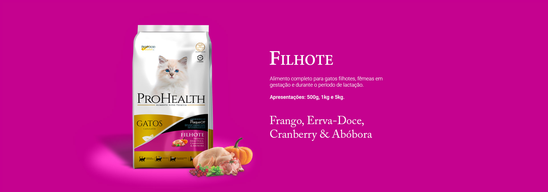Referência: 01 copo de 250 ml = aproximadamente 100g de Pró-Health Cat Filhote.