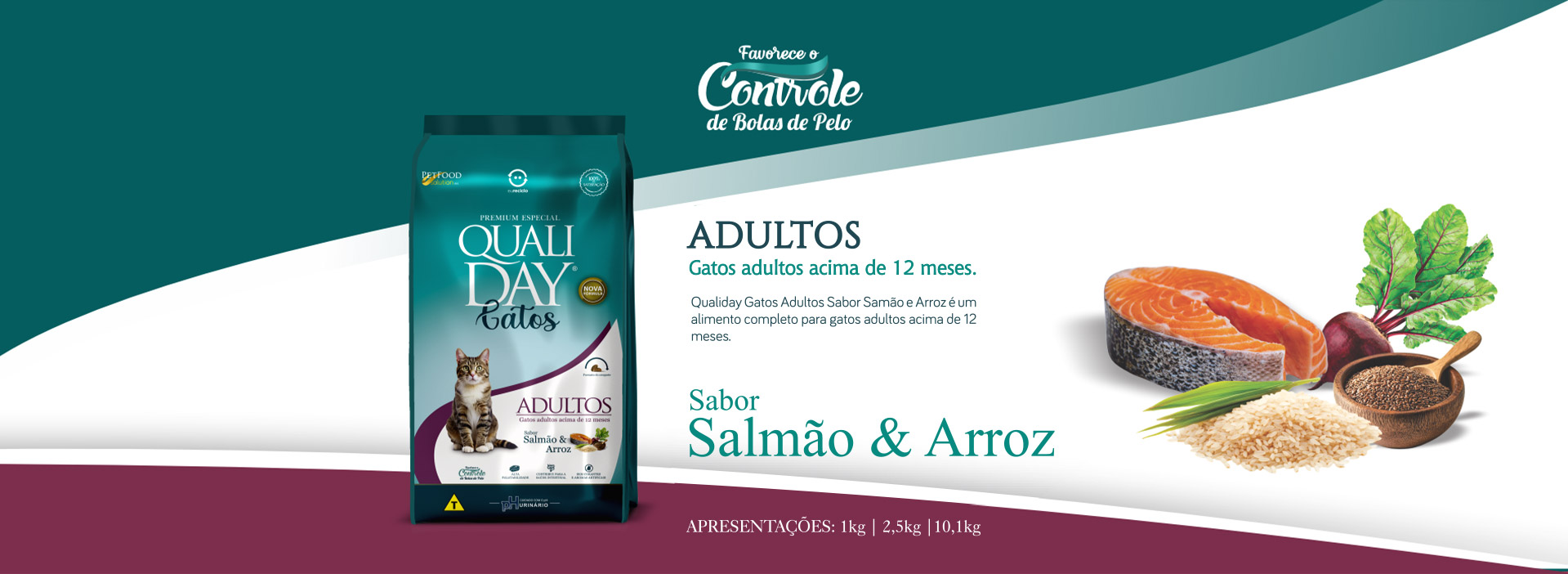 Servir Qualiday Gatos seguindo as quantidades diárias sugeridas na tabela abaixo. Recomenda-se dividir as quantidades diárias em porções, oferecidas ao longo do dia. As quantidades de alimento são orientativas, podem variar de forma individual, conforme porte, nível de atividade física e temperamento do gato.