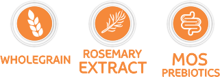 Wheat flour, whole wheat flour, canola oil, sunflower oil, sugar, rice flour (1.0%), carrots (0.5%), peas (0.5%), chia (0.3%), sodium hexametaphosphate, prebiotic additive (Mannanoligosaccharides), rosemary extract, Vitamin A, Vitamin D3, Vitamin E, Vitamin K3, Vitamin B1, Vitamin B2, Vitamin B6, Vitamin B12, niacin, calcium pantothenate, folic acid, choline chloride, biotin, iron sulfate, copper sulfate, manganese sulfate, zinc sulfate, calcium iodate and sodium selenite.