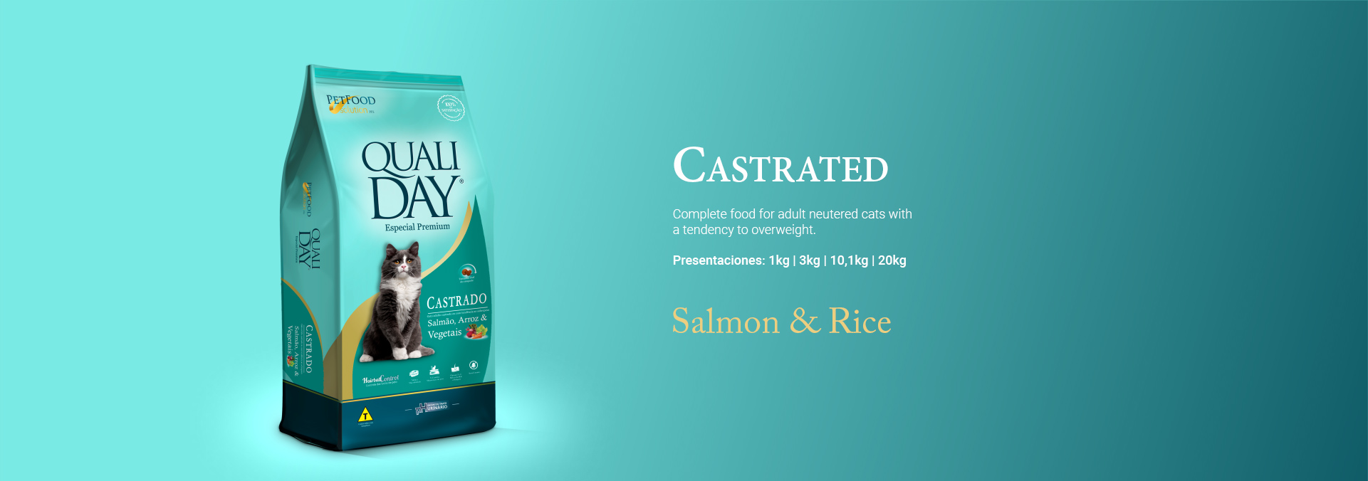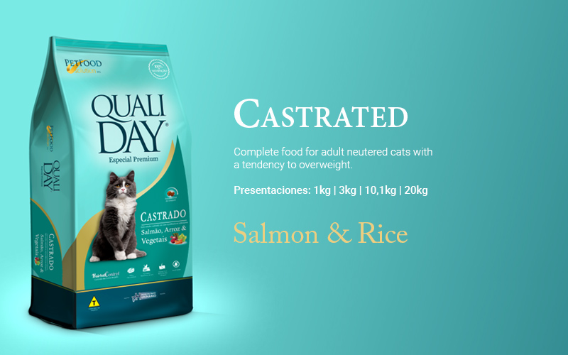 Reference: 01 250 ml cup = approximately 100 g of Qualiday Gato Castrado Salmão.